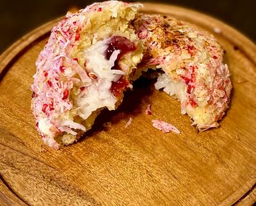 A Peanut butter based cookie with peanut butter chips and crushed Nutter Butter cookies folded in and stuffed with marshmallow cream.